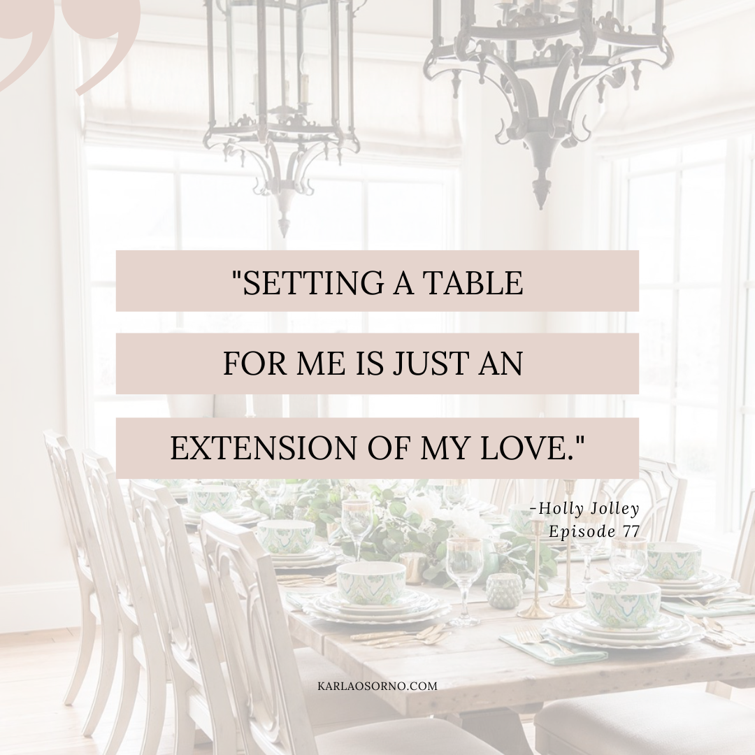 In today’s episode, I am talking with Holly. She is a loving wife, mother, and grandmother. Creating memories and connections around a dinner table is what brings her joy. Holly has always loved creating a warm and welcoming home, decorating and styling it for the seasons, and cooking and baking. Today we hear Holly’s story and talk about sharing what you love with other women, creating a community of like-minded women, and fulfilling your dreams and ambitions. I hope this episode encourages you to do more of what you love.